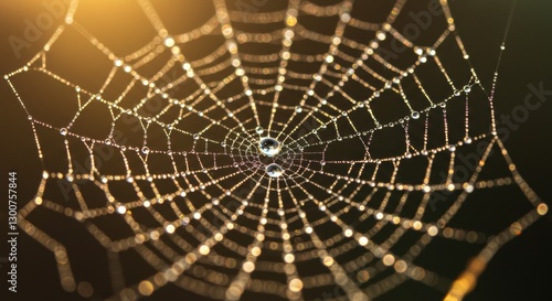 © Timur, Fototapeta premium Dewdrops glisten on a delicate spider web at dawn. Generative AI