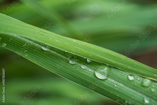 Naklejka premium Dewdrops on a Lemongrass Blade.