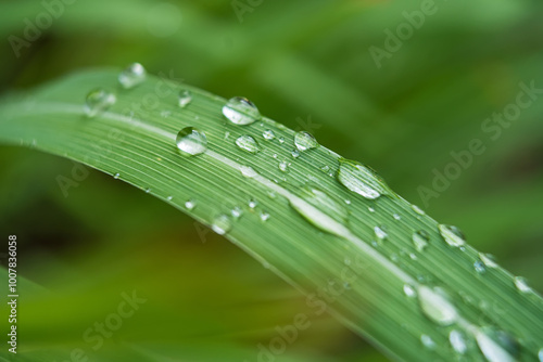 Naklejka premium Dewdrops on a Lemongrass Blade.