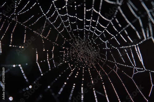 © Anna, Naklejka premium Dewy Spider Web Sparkling in Sunrise Light