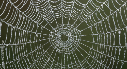 © Muhammad Umar, Obraz premium Dewy Spider Web with Water Droplets on Green Background, Morning Nature Scene