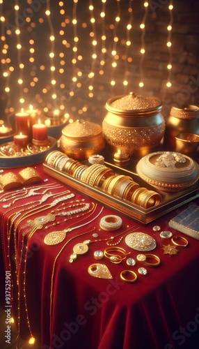 © Little Vampire, Fototapeta premium Dhanteras Sparkle: Gold and Silver Jewelry Display