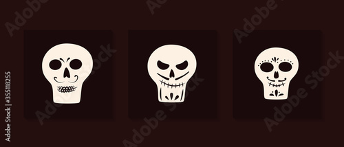 © Екатерина Окунева, Fototapeta premium Dia de Los Muertos, traditional Mexican Halloween vector flat cartoon cards design.