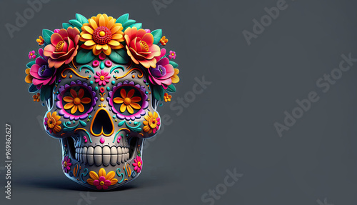 © Dwi, Fototapeta premium Dia De Los Muertos Wallpaper Background Illustration, Mexican Sugar Skulls on the Day of The Dead