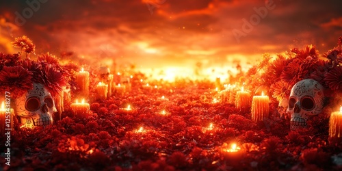 © Lens motion, Fototapeta premium Dia de Muertos: A Sunset Remembrance
