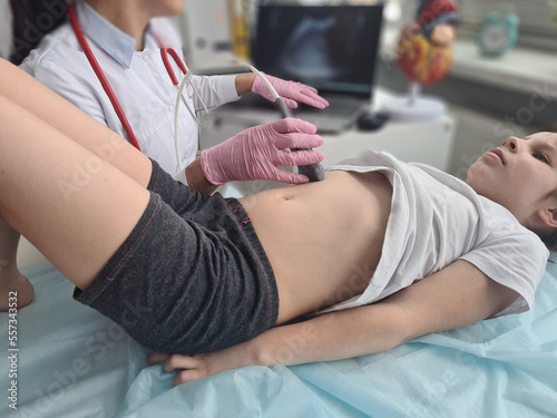 Fototapeta premium Diagnosis of abdominal organs of child using ultrasound