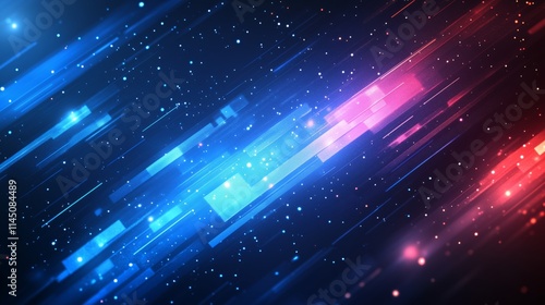 © Iryna, Fototapeta premium Diagonal blue and red lights exploding in digital space