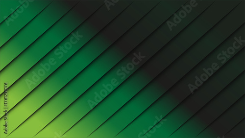 Fototapeta premium Diagonal Green and Black Gradient Stripes with Shadow Effect abstract background