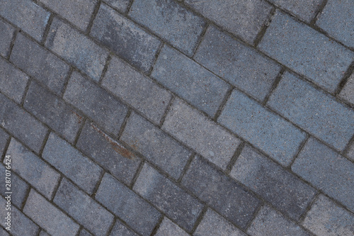 Obraz premium Diagonal view at weathered grunge gray stone brick wall with dark cement grid...