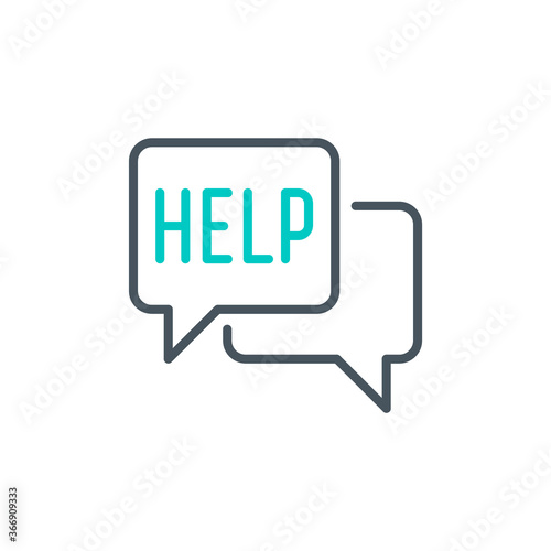 © ASEF, Fototapeta premium dialog with Web site support service outline flat icon. Single high quality outline logo symbol for web design or mobile app. Thin line logo. Black and blue icon pictogram isolated on white background