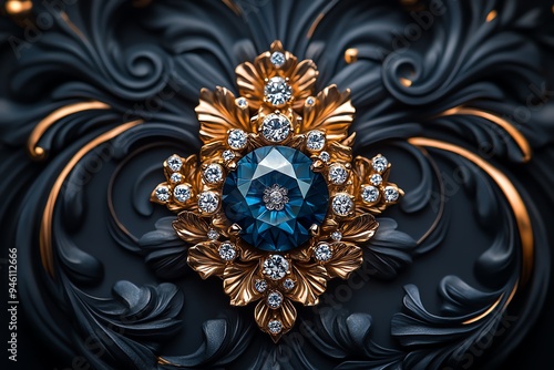 © Sanchai, Fototapeta premium Diamond as a luxury symbol, depicted in an artwork featuring it in an opulent, elaborate jewelry piece