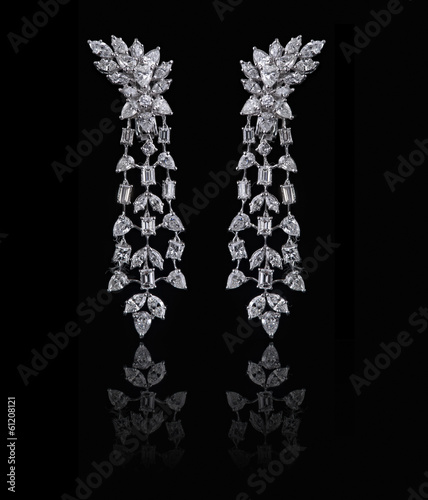 Obraz premium Diamond Earrings on a black reflective background