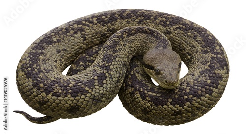 © MumarProject, Fototapeta premium Diamond python in coiled position, showcasing intricate scale details and isolated on white