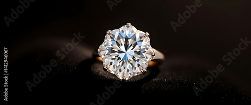 © KWY, Fototapeta premium diamond ring sitting on top of a black surface