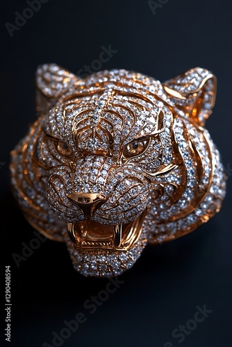 © Mengarungi, Obraz premium Diamond Tiger Head Pendant on Dark Background