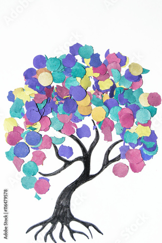 © Merijar, Fototapeta premium Dibujo de árbol con confeti