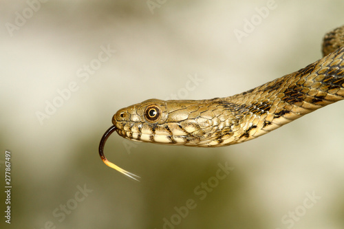 © Geza Farkas, Fototapeta premium Dice snake, Natrix tessellata shows the tongue