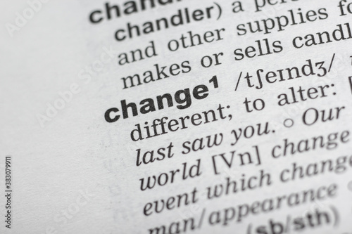Obraz premium Dictionary definition of the word change. Close-up shot