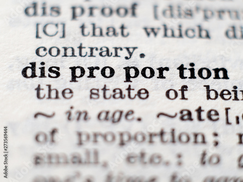 © Vitezslav Vylicil, Fototapeta premium Dictionary definition of word disproportion. Selective focus.