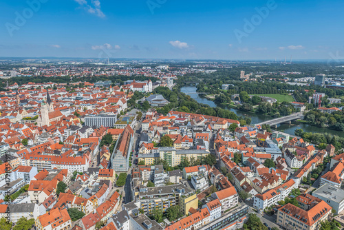 © ARochau, Fototapeta premium Die bayerische Großstadt Ingolstadt an der Donau aus der Vogelperspektive, Blick zur Altstadt