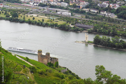 Naklejka premium Die Burgruine Ehrenfels bei Assmannshausen in Hessen und der Mäuseturm bei...