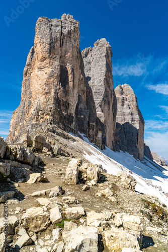 Naklejka premium Die Gebirgsstöcke der Drei Zinnen im Pustertal