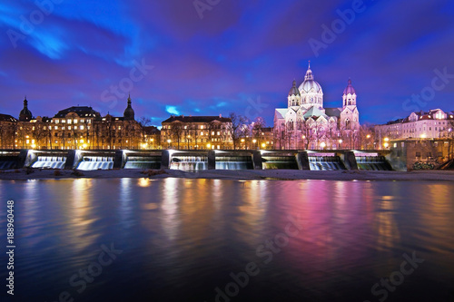 © Anselm Baumgart, Obraz premium Die Isar in München am Abend