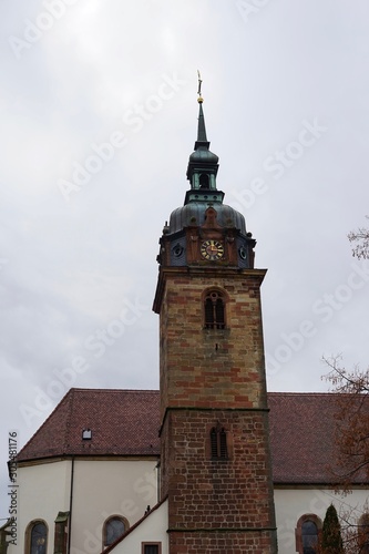 Fototapeta premium Die katholische Dorfkirche St. Barbara von Hainfeld in der Pfalz