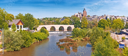 © mojolo, Fototapeta premium Die Lahn bei Wetzlar mit Dom, Altstadt und alter Brücke