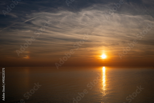 Fototapeta premium Die Nordsee bei Büsum - dramatisch schöner Sonnenuntergang mit Spiegelung auf...