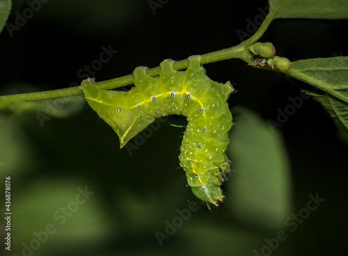 Naklejka premium Die Raupe einer Pyramideneule an einerm Busch.
