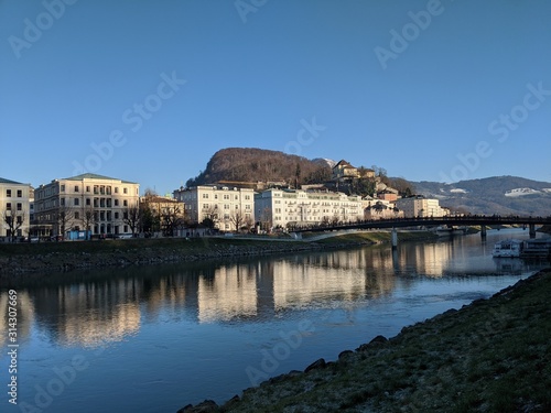 Obraz premium Die Salzach in Salzburg mit dem Kapuzinerberg im Hintergrund