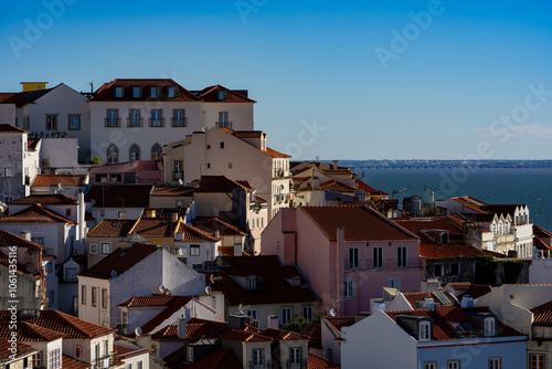 Obraz premium Die schöne Altstadt Lissabon in Portugal mit Burgen alten Gebäuden und...