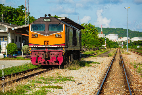 © chitsanupong, Obraz premium Diesel-electric locomotive station railway