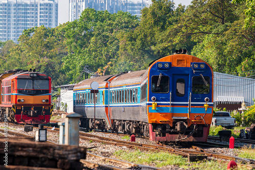 © chaophrayaart, Obraz premium Diesel-rail trains with traditional public transport for commuting. that is being updated