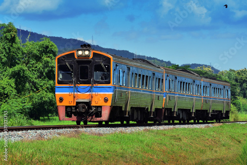 © siding_headtrack, Naklejka premium Diesel railcar on the railway in Thailand