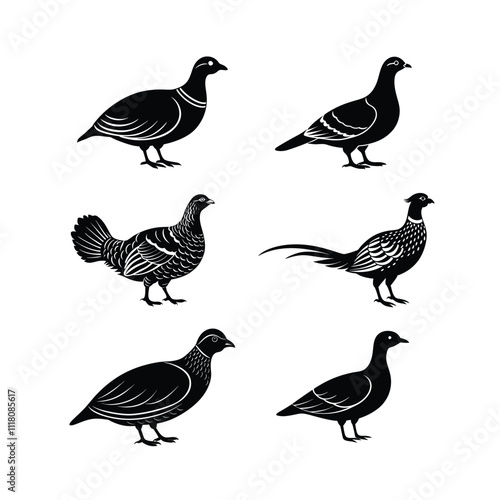 © Antu, Obraz premium 6 difference birds vector such as Ruffed Grouse,Chukar Partridge,Pheasant etc
