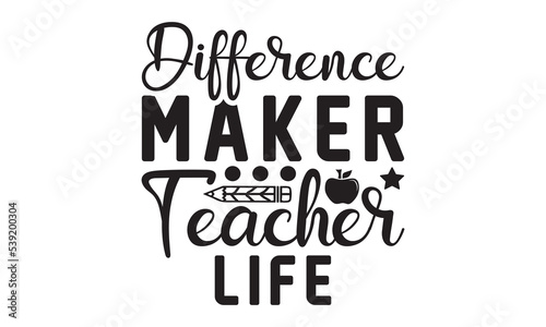 © SvgDesignHub, Fototapeta premium Difference Maker Teacher life Svg, Teacher SVG, Teacher SVG t-shirt design, Hand drawn lettering phrases, templet, Calligraphy graphic design, SVG Files for Cutting Cricut and Silhouette