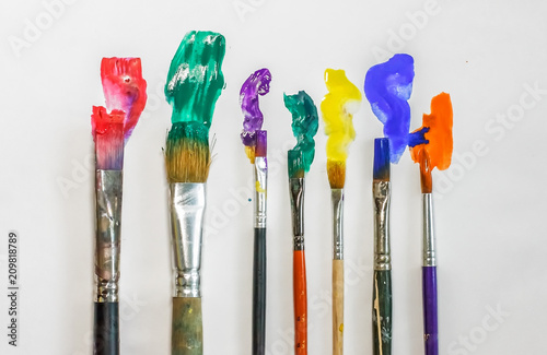 Fototapeta premium DIFFERENT ARTISTIC BRUSHES ON THE WHITE BACKGROUND,