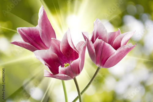 © cooperr, Fototapeta premium different beautiful flowers in park closeup