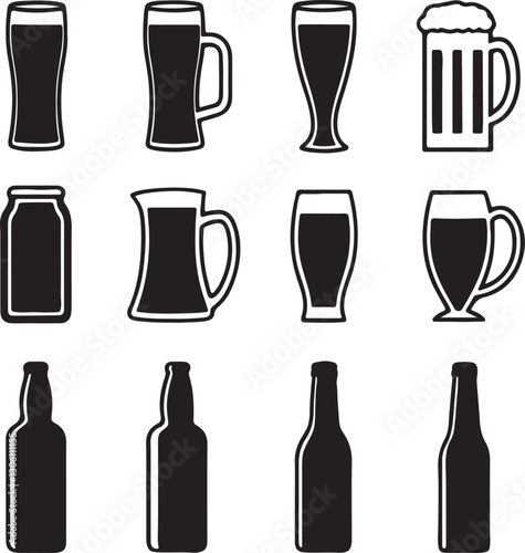 Fototapeta premium 12 Different Beer Style Set Silhouette Vector Vol - 4 ,plastic, silhouette,...