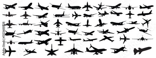 Fototapeta premium Different black silhouettes of airplane, vector design