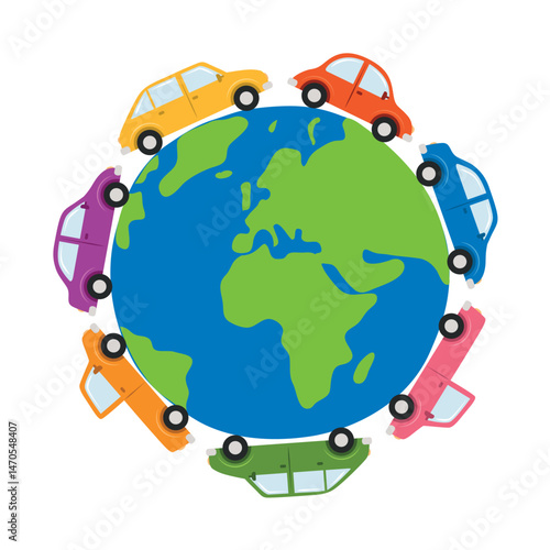 © krissikunterbunt, Fototapeta premium different cars drive around the world isoalted vector illustration