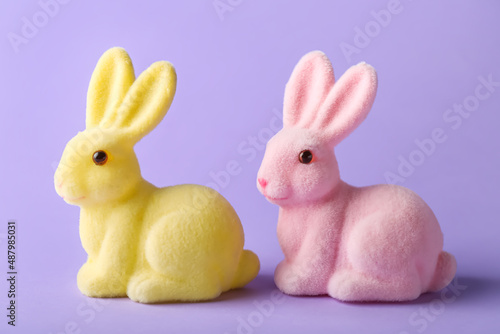 © Pixel-Shot, Obraz premium Different cute Easter bunnies on purple background