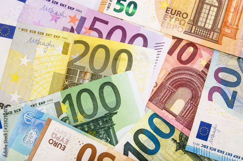 Obraz premium different euros for background. View from above.