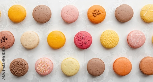 Obraz premium Different flavored macaroons placed on a white clean background
