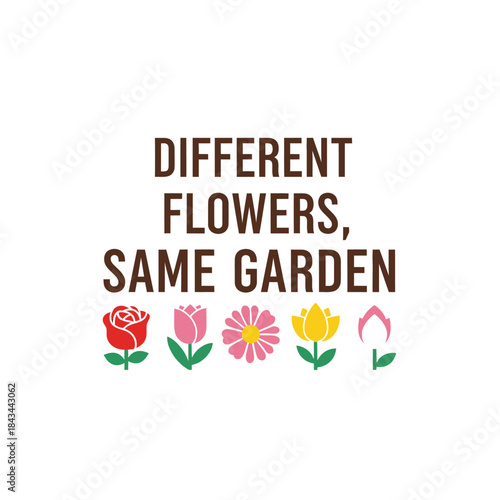 Fototapeta premium Different flowers same garden typography t-shirt design