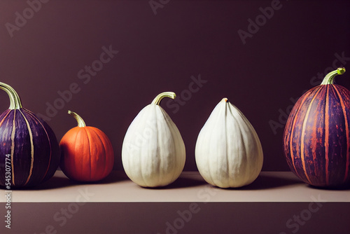 Obraz premium different gourd colours and shapes side by side on a studio minimal...