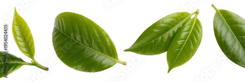 © sara, Obraz premium Different green leaves isolated white background leafy