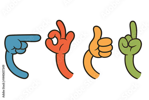 Fototapeta premium Different hand gestures displayed on a white background represent various...